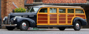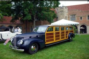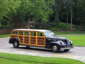 Restoration One-of-a-kind 1940 LaSalle 8 Door Woodie Wagon. Featured below at The Meadowbrook Hall in Michigan, where the vehicle was originally built for Matilda Dodge Wilson. Restored by Bodys by Boyd in Oakhurst, California.